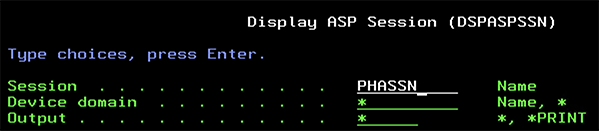 Start the ASP session (DSPASPSSN)